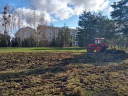 Anfang April erfolgte der sprichwörtliche erste Spatenstich. Mit einem Traktor wurde am Sportlerweg die öde Grasnarbe umgebrochen und alte Sorten von Schwarz- und Gelbhafer ausgesät. Das seltene Saatgut hat das ATZ vom Verein zur Erhaltung und Rekultivierung von Nutzpflanzen, kurz VERN e.V., aus der Uckermark erhalten. Das Regiosaatgut der Wildkräuter kommt nach Ostern in die Erde.