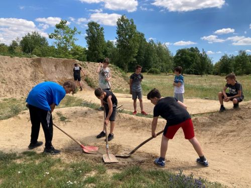 So ging es am Samstag, 04.07.2020 mitsamt den eigenen Mountainbikes nach Cottbus zum Sub-Hills Trail des Wheels e.V. in Schmellwitz. Dort zeigte der Mountainbike-Profi Paul Donath den Jungs in einem Bau- und Fahrworkshop wie man einen Mountainbike Parcours aus Lehm richtig pflegt. Natürlich gab es auch genügend Zeit die Strecken, Hindernisse und Sprünge ausgiebig zu testen.