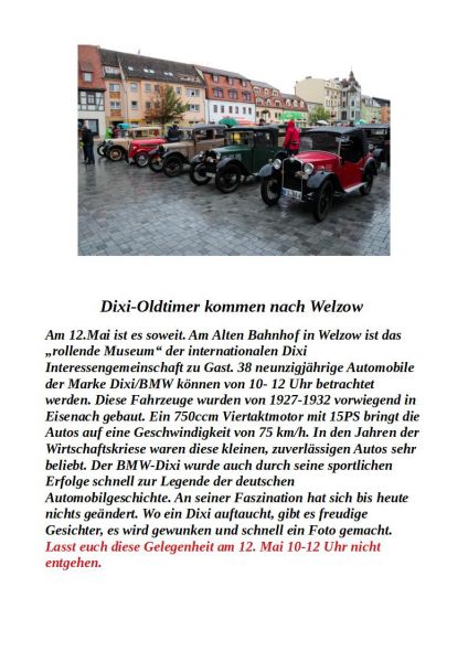 Am 12. Mai sind am Alten Bahnhof in Welzow Oldtimer zu Gast.
