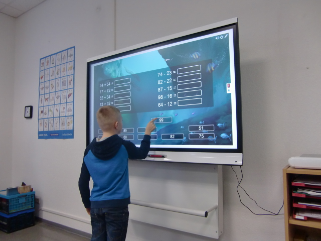 Die Kinder unserer Grundschule sind schon ganz begeistert über eine innovative Neuerung in ihrem Schulalltag. Denn auch wenn sich das 65 Zoll große „Smart Board“ wie eine klassische Tafel auf und ab bewegen lässt, so ist es doch eine völlig neue Generation der Schultafel. Die neue Tafel verfügt über einen Touchscreen mit intuitiver Bedienung, gekoppelt an einen Windows10 Multimedia PC.