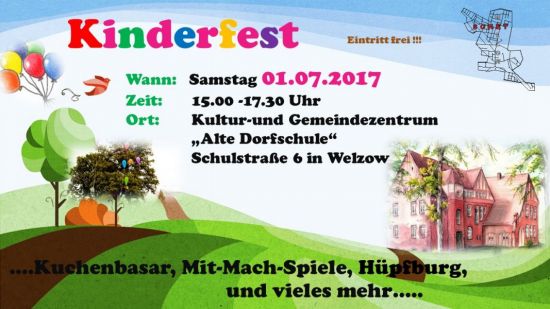 Im Kultur- und Gemeindezentrum "Alte Dorfschule" in der Schulstraße 6 in Welzow ist am Samstag wieder eine Menge los. Von 15:00 - 17:30 Uhr findet das jährliche Kinderfest des "SONET" statt. Es gibt interessante Mit-Mach-Spiele, eine Hüpfburg, Pony-Reiten, sowie Aktionen der Jugendfeuerwehr, einen kleinen Trödelmarkt und vieles mehr. Für das leibliche Wohl ist mit Getränken kleineren Leckereien und Bratwurst gesorgt.